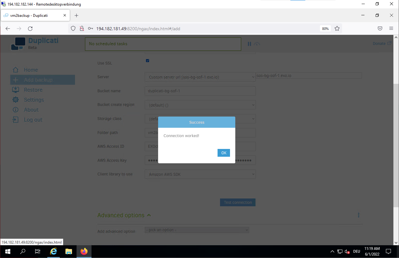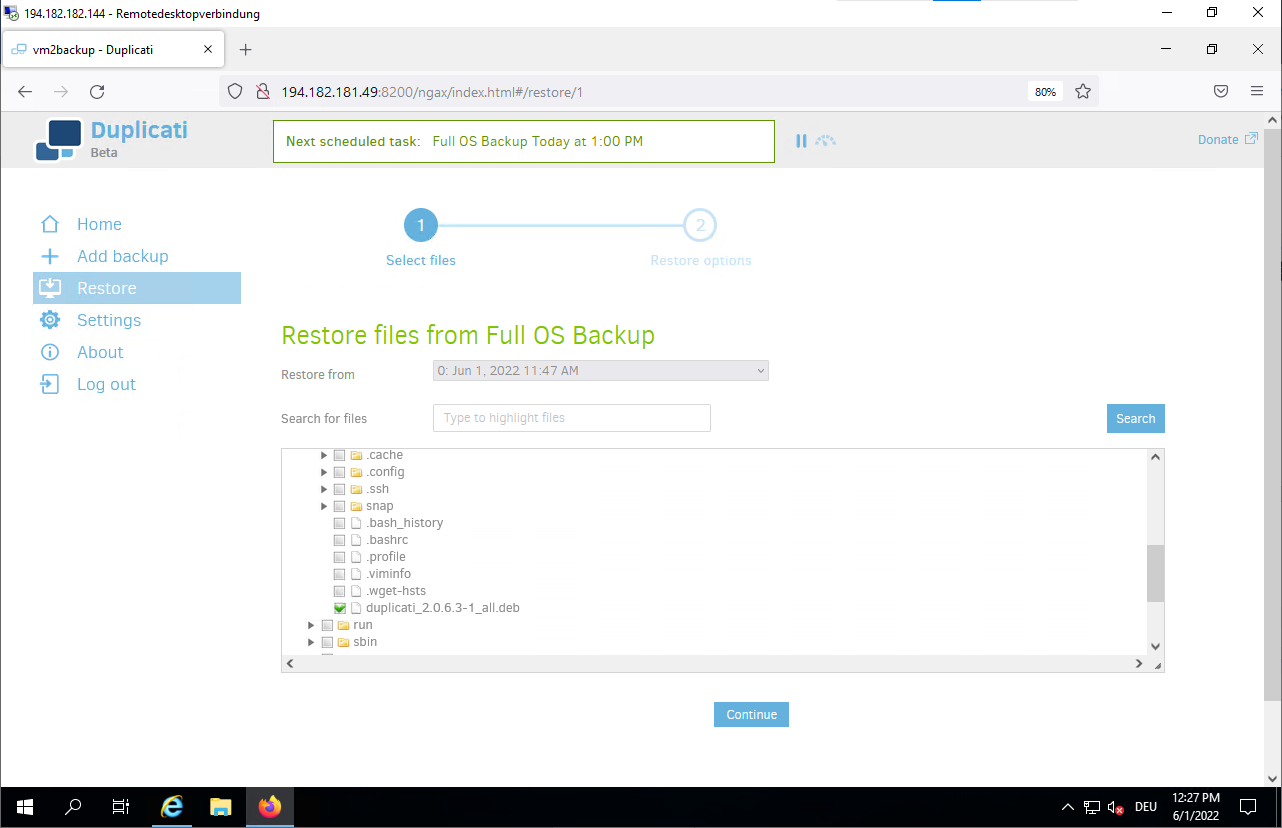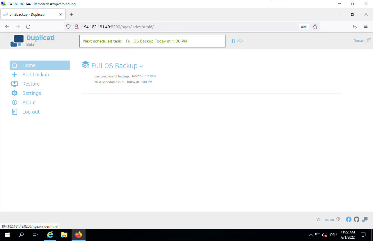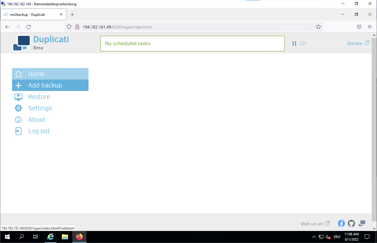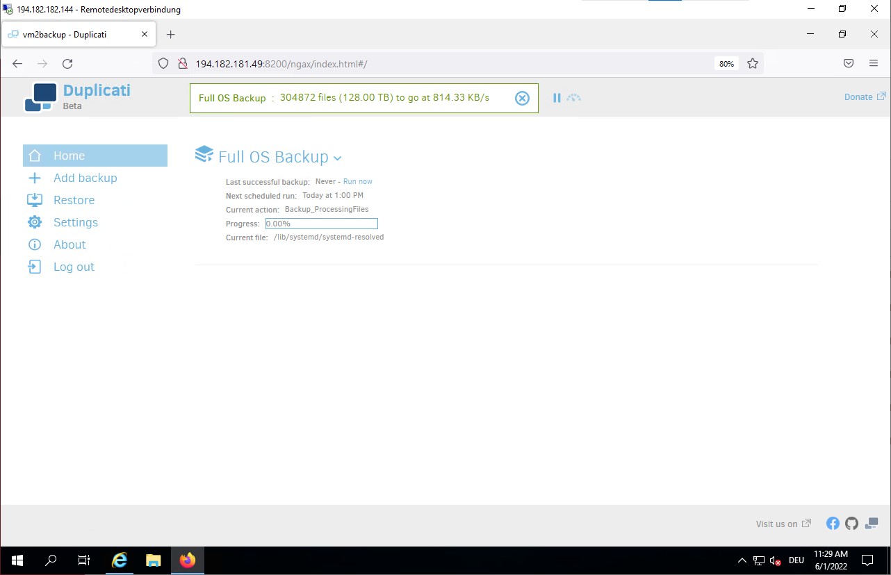 Jun 01 10:46:52 vm2backup systemd[1]: Started Duplicati web-server.- Connect to the Duplicati web interface to configure your backup.