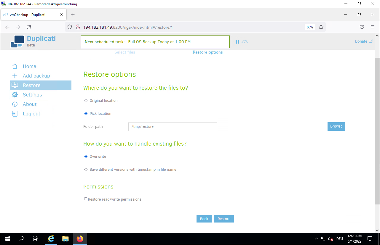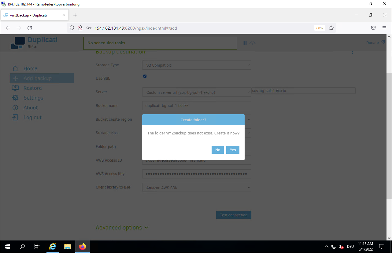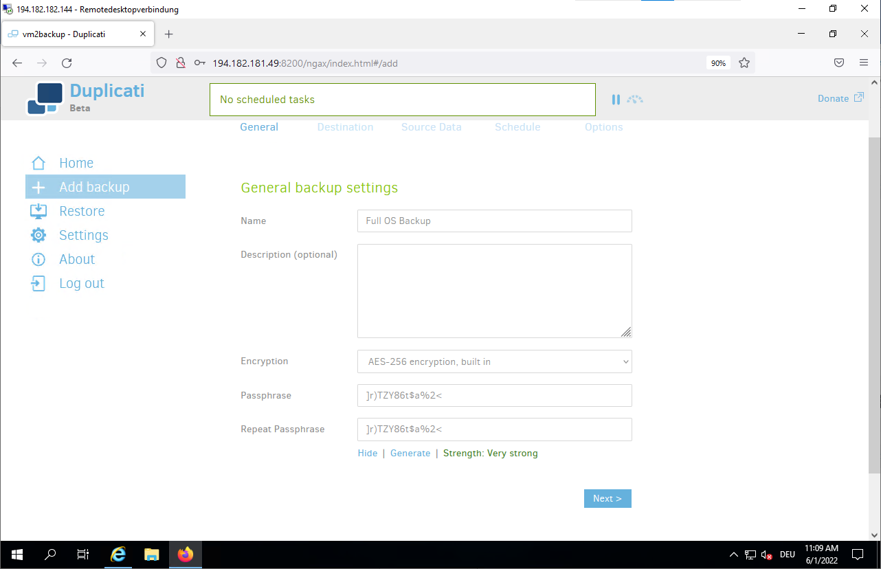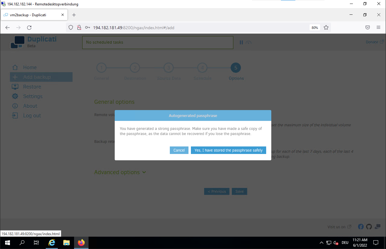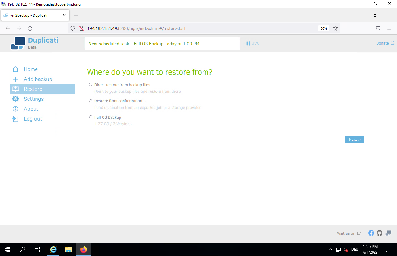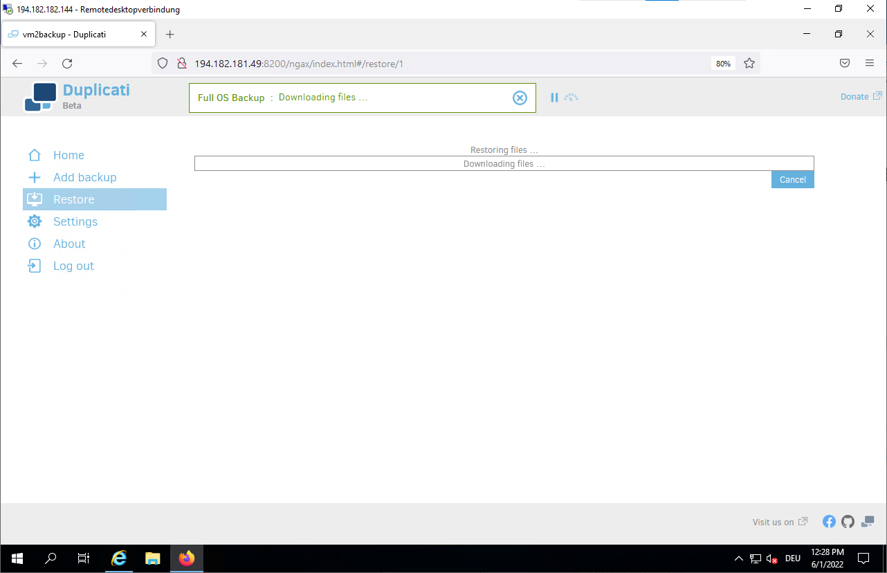 Jun 01 10:46:52 vm2backup systemd[1]: Started Duplicati web-server.- Connect to the Duplicati web interface to configure your backup.