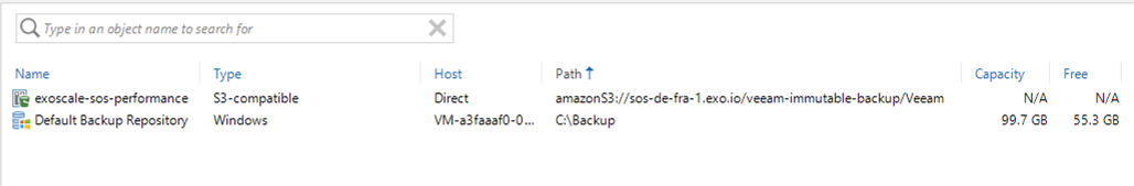 - Configured backup repository with object lock enabled on Exoscale SOS