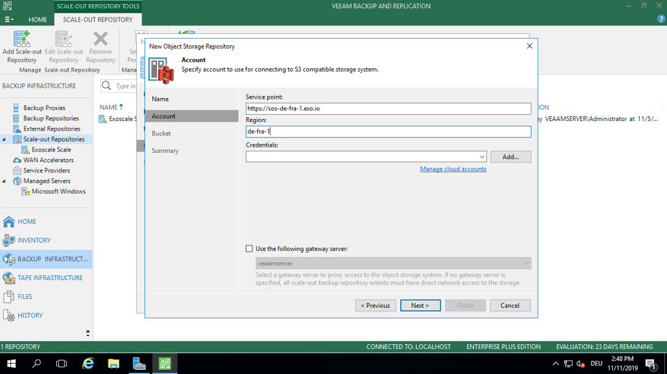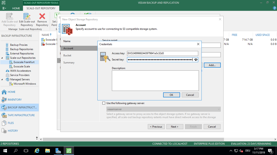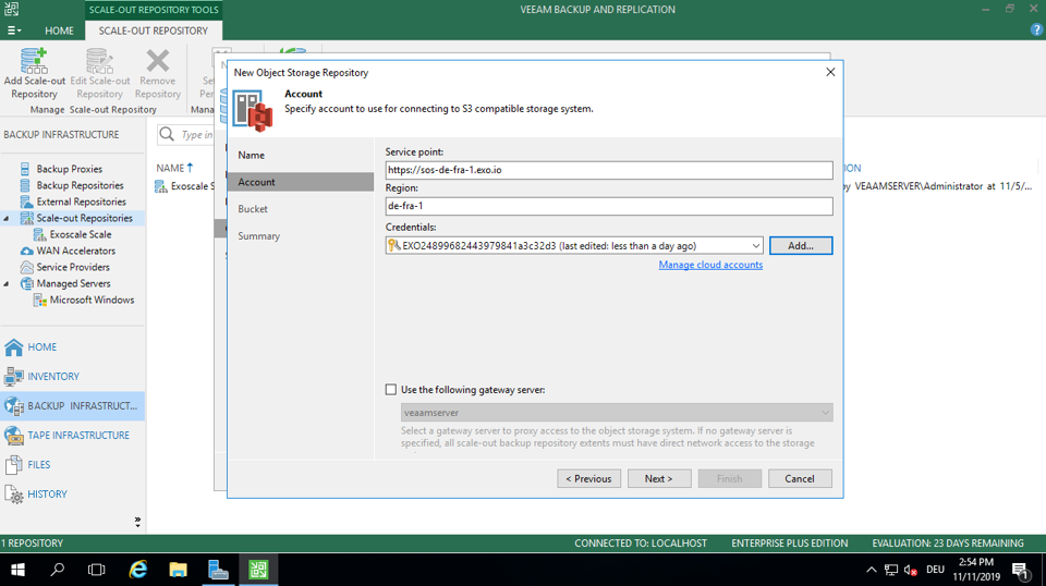 Veeam is predominantly used in the enterprise segment as a backup software. Amazon S3-compatible object storages are often used for long term storage for backups. Exoscale offers an S3-compatible object storage that works with Veeam. This guide shows how to set up Veeam for backups.