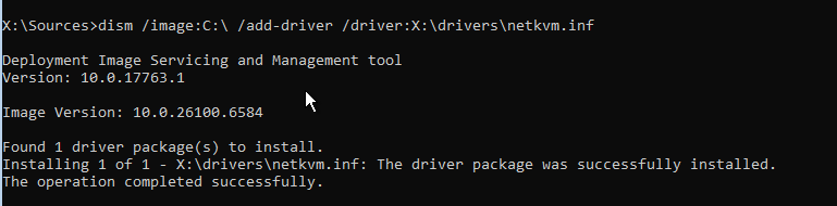 dism /image:C:\ /add-driver /driver:X:\drivers\netkvm.inf