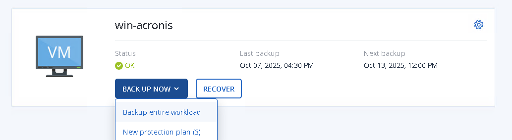 - In the Acronis portal, go to All Devices and perform a restore from your old instance to the Exoscale instance (your old instance is the one with status OK).