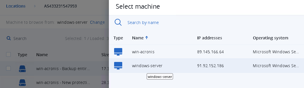 - Select the backup from backup storage.