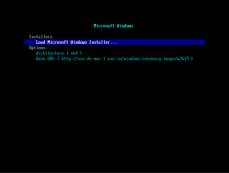 Boot your Exoscale instance into “netboot-efi” mode to deposit required VirtIO drivers into the recovery using following command: