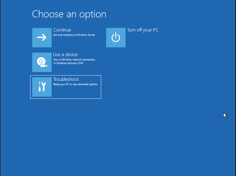 Now click on Troubleshoot and then Advanced options.