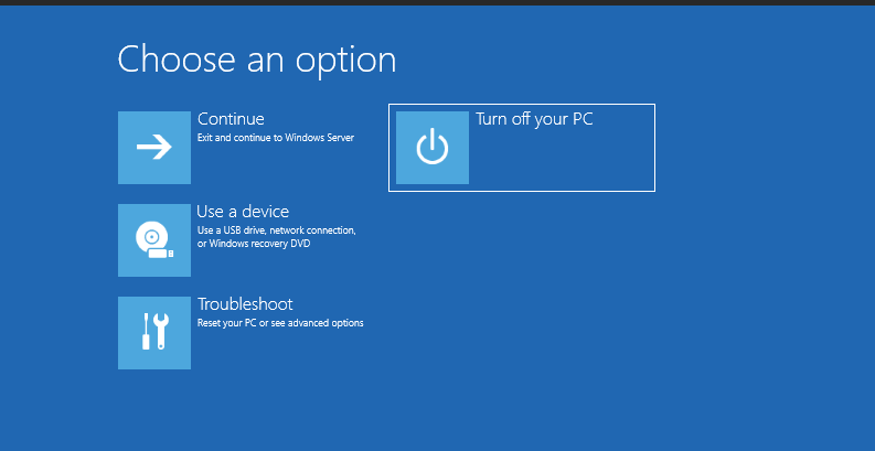 Exit the console with the exit command and click on Turn off your PC.