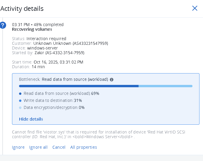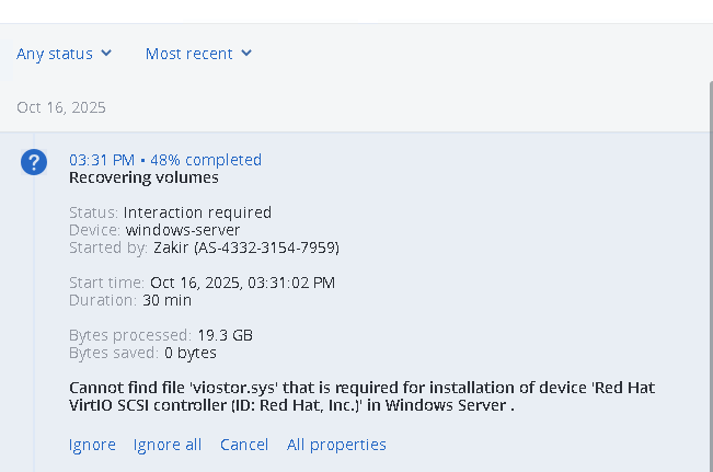 Troubleshoot recovery process issues