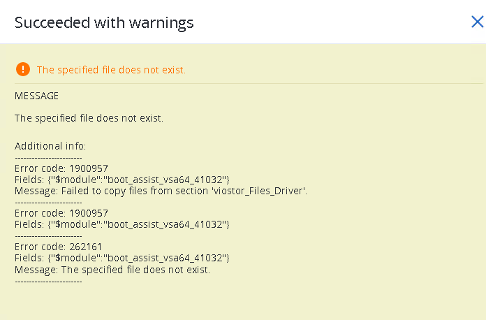 During a separate recovery attempt, the system displayed an error indicating the viostor.sys driver could not be found.